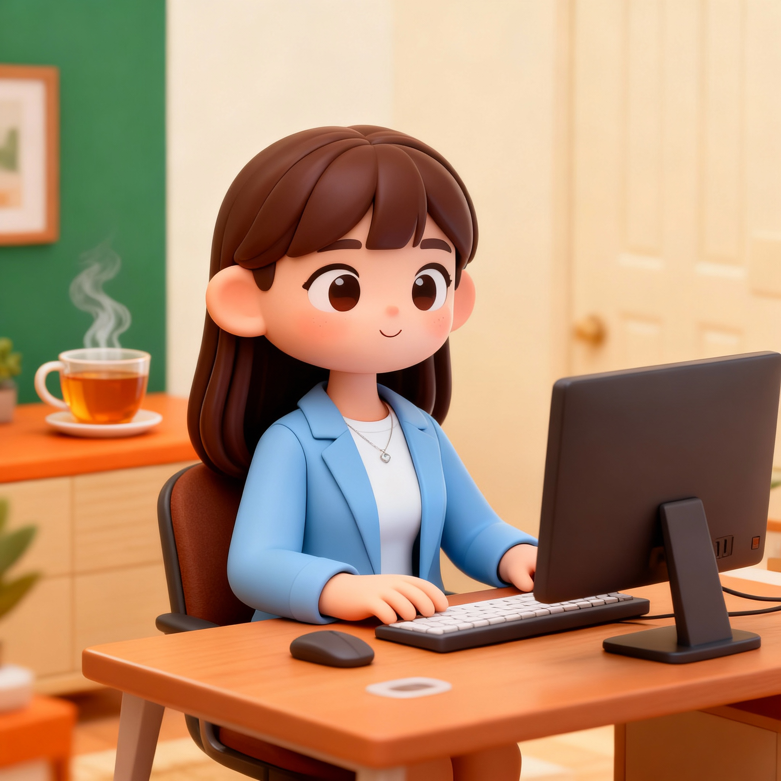 A girl works from home, sitting on the couch with a laptop on her lap.